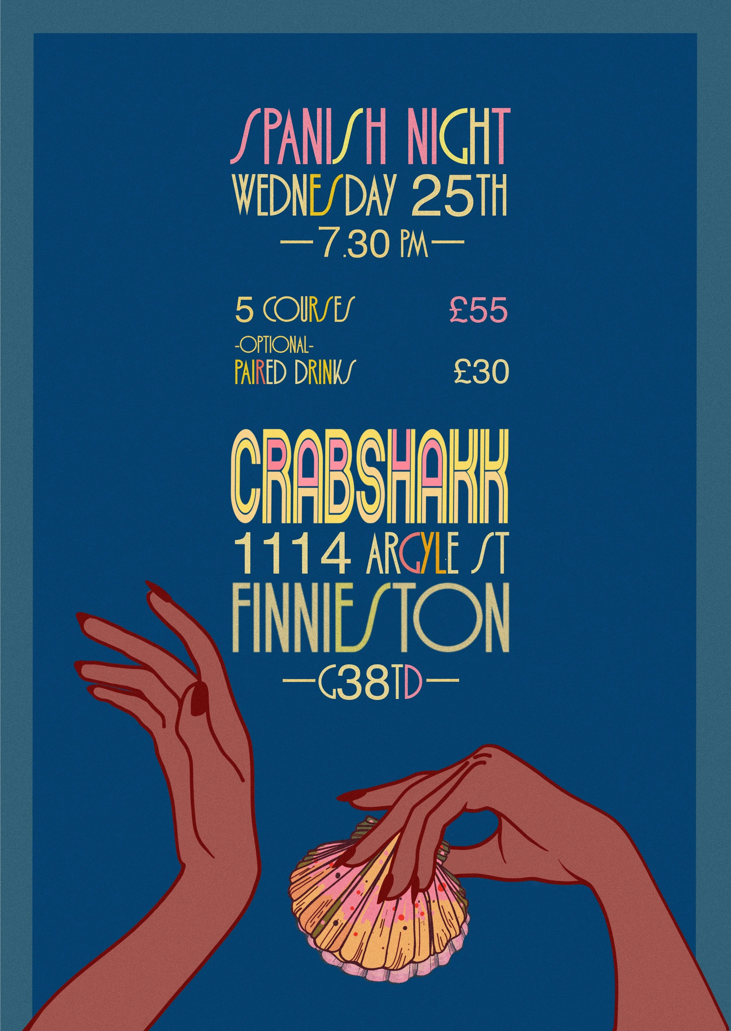 Bookings via email info@crabshakk.com or phone 0141 334 6127